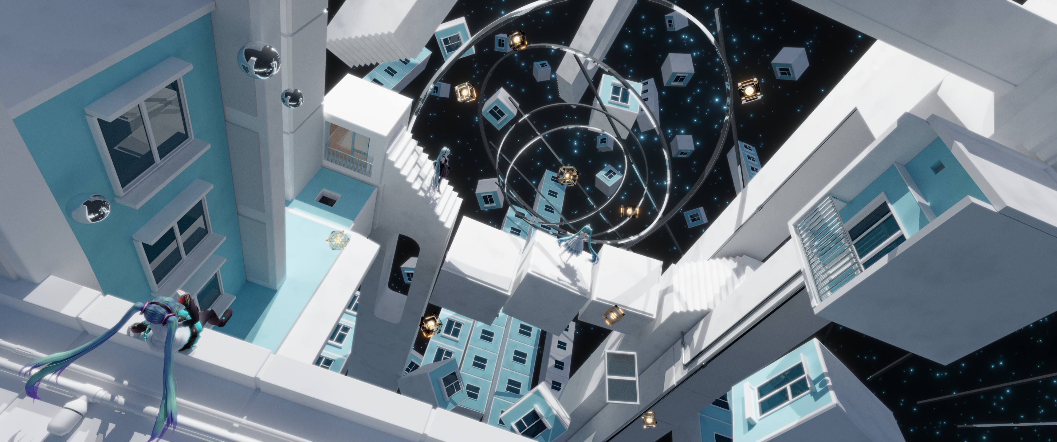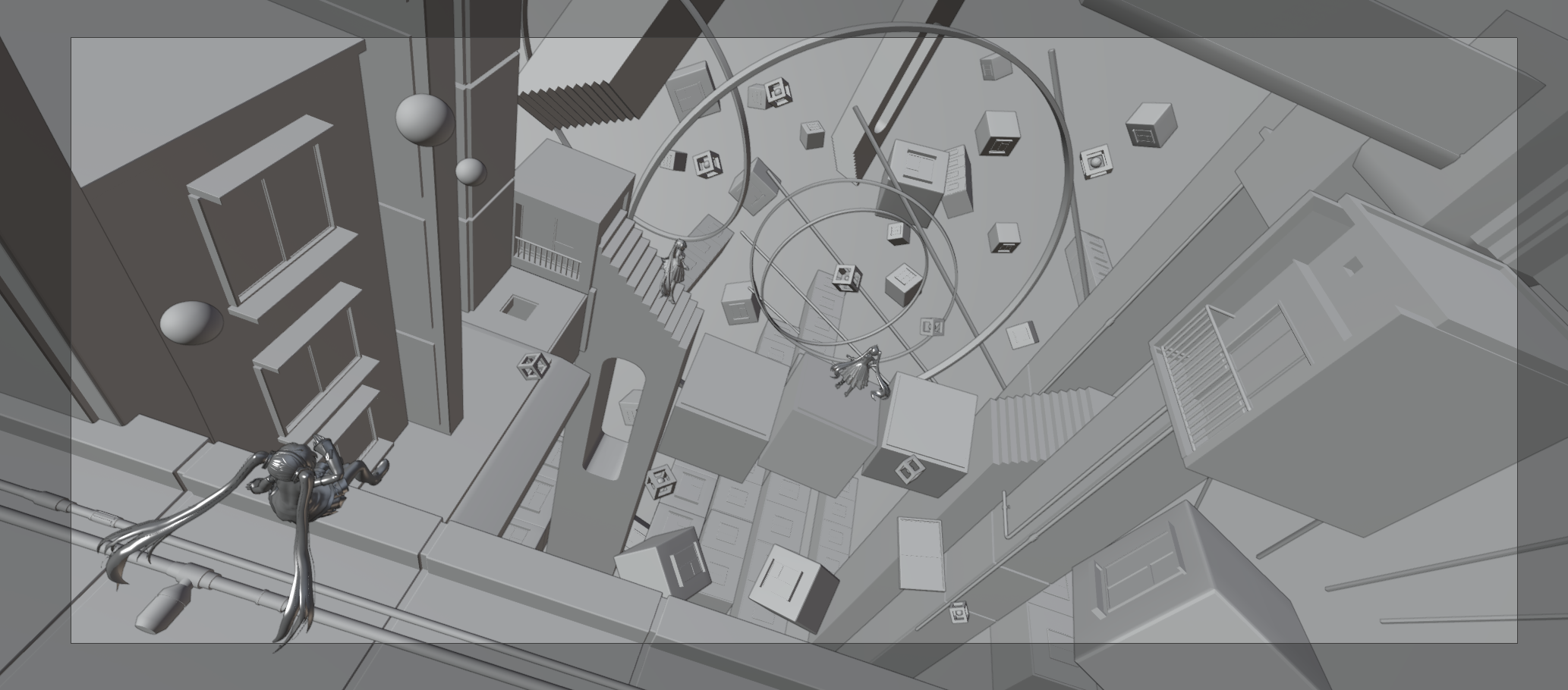 In this 3D environment render, I explore an abstract space unconstrained by gravity or fixed orientations. The base assets were modeled in Maya, with lighting, composition, and character posing done in Blender, with assistance from my friend Yichen Huang. I also used this piece as an opportunity to experiment with volumetric fog to enhance depth and atmosphere.