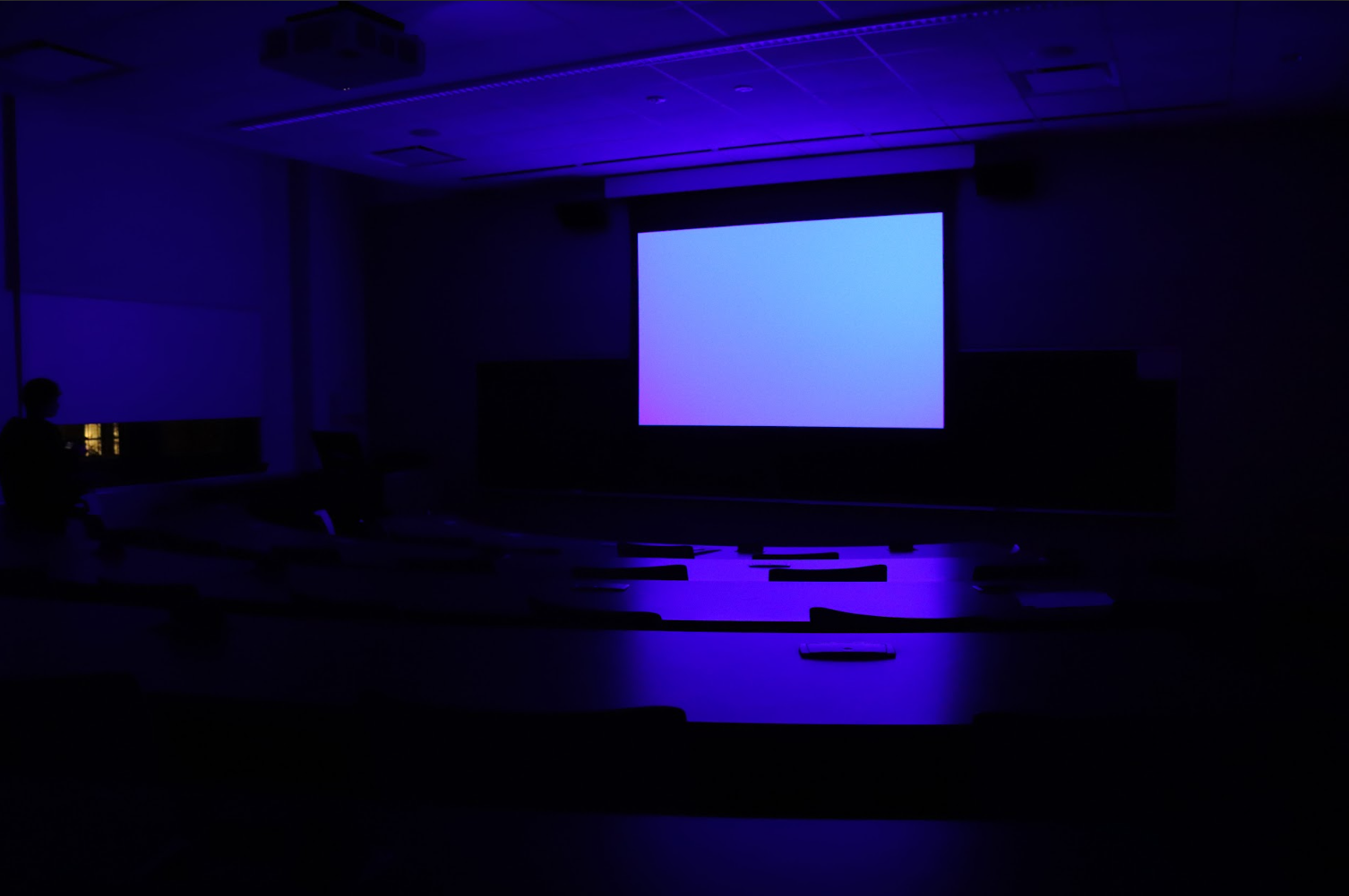As 3D modelling practice, I attempt to replicate the likeness of a photo I took of a classroom after hours. I place emphasis on recreating the atmospheric lighting created by the projector.