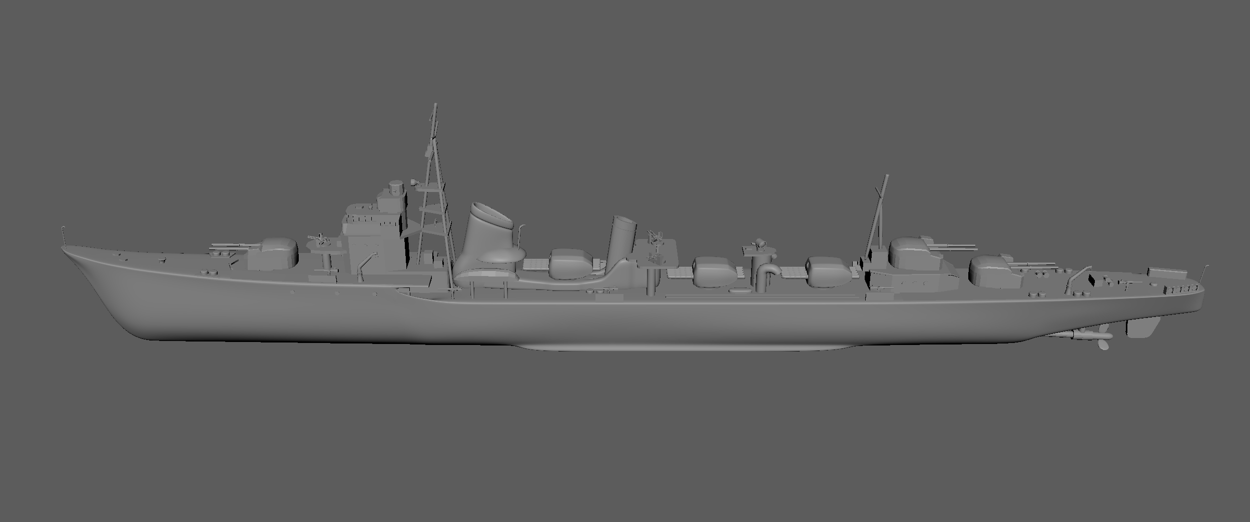 I love WWII naval history, so as a modeling exercise, I created an accurate base model of the WWII destroyer IJN Shimakaze using original blueprint schematics as reference. The asset was modelled for distant renders, with detail intentionally limited at the base-model level to prioritize efficiency. All modeling, texturing, lighting, and volumetrics were done in Maya.